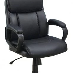 Black Leatherette Office Chair with Top Padded Back and Casters by Benjara