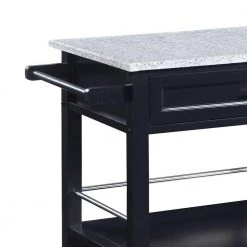 Brown and Black Tray Top Wooden Kitchen Cart with 2-Shelves and Casters by Benjara