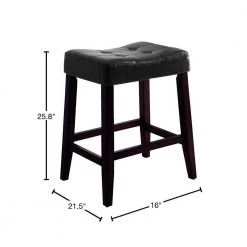 25.8 in. H Black and Brown Wooden Stools with Saddle Seat and Button Tufts (Set of 2) by Benjara