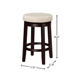 43 in. White Low Back Solid Wood Faux Leather Upholstered Swivel Counter Stool by Benjara