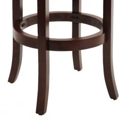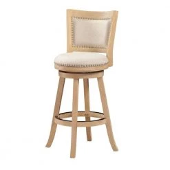 43.5 in. Ivory Solid Wood Swivel Barstool With Curved Panel Back and Brass Nailheads by Benjara