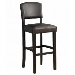 45.25 in. H Brown Wooden Bar Stool with Padded Upholstered Seat and Backrest by Benjara
