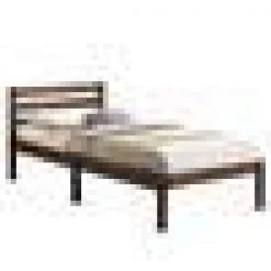 Simply Design Brown Twin Bed with Wooden Slatted Headboard by Benjara