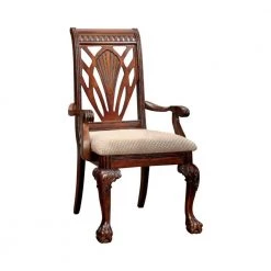 Traditional Brown Rubber Wood Dining Chair with Faux Leather Upholstery (Set of 2) by Benjara