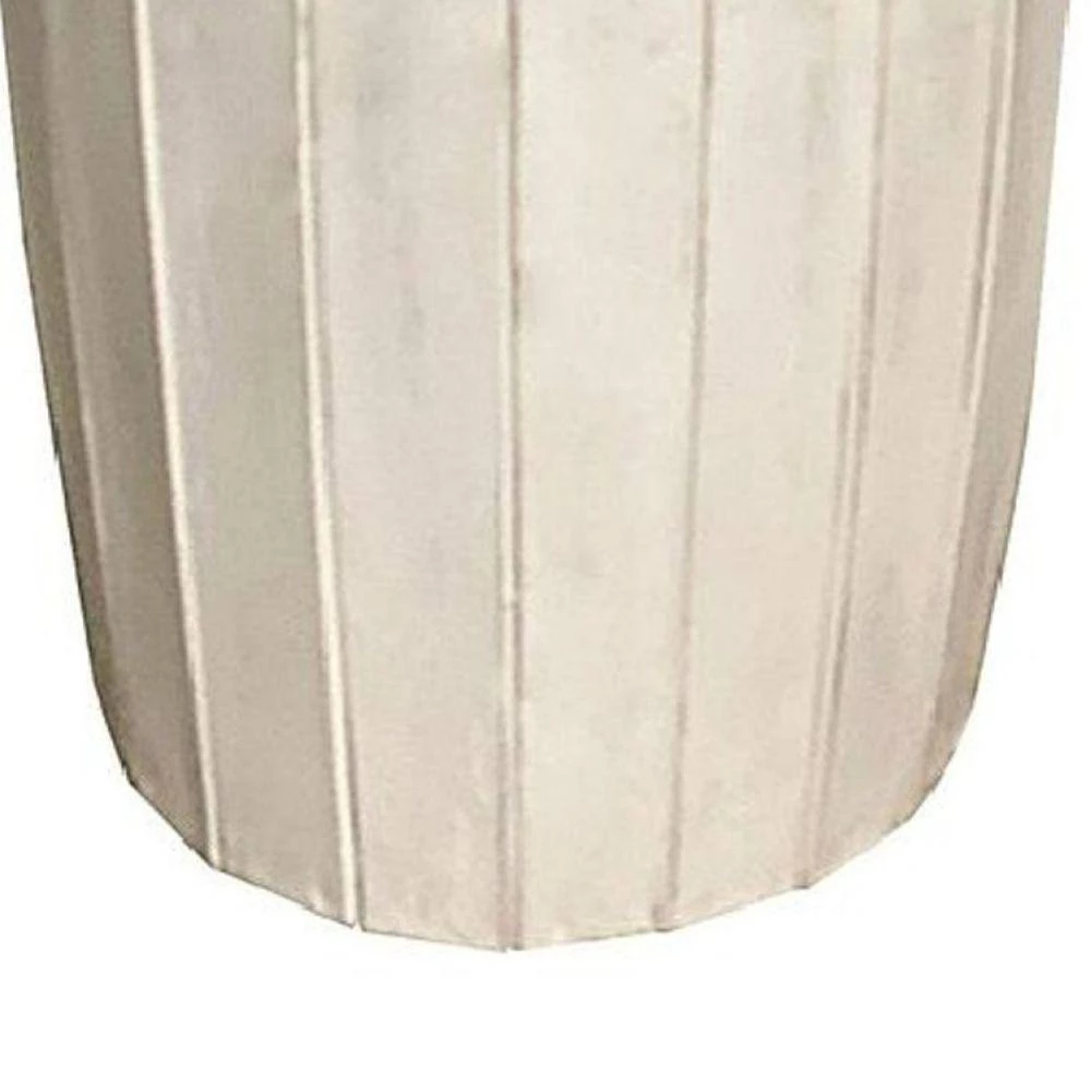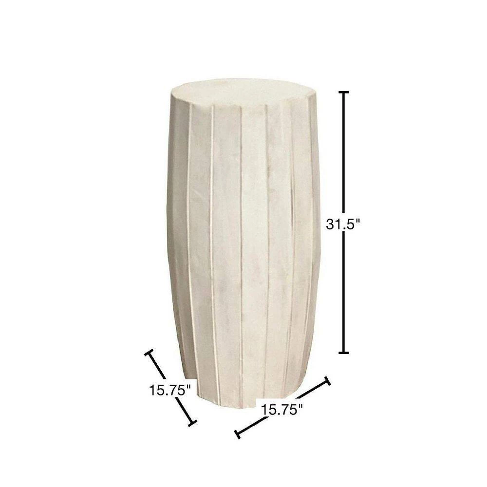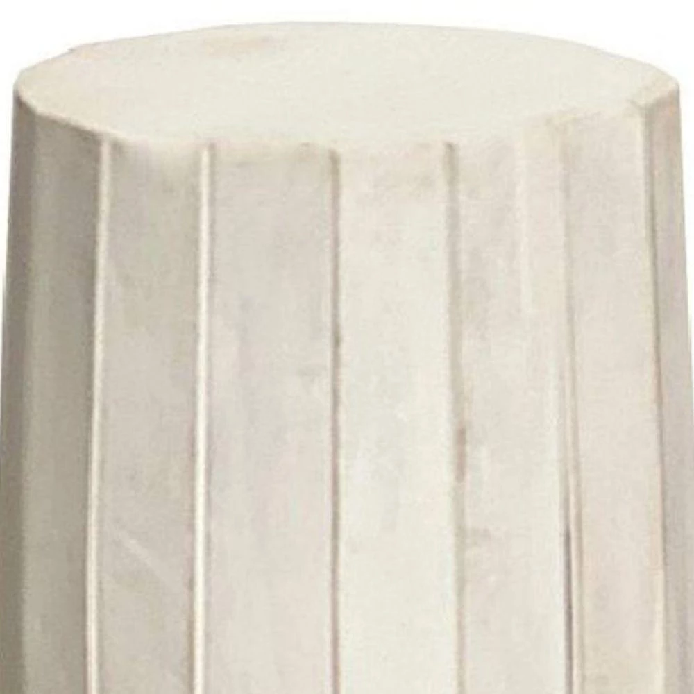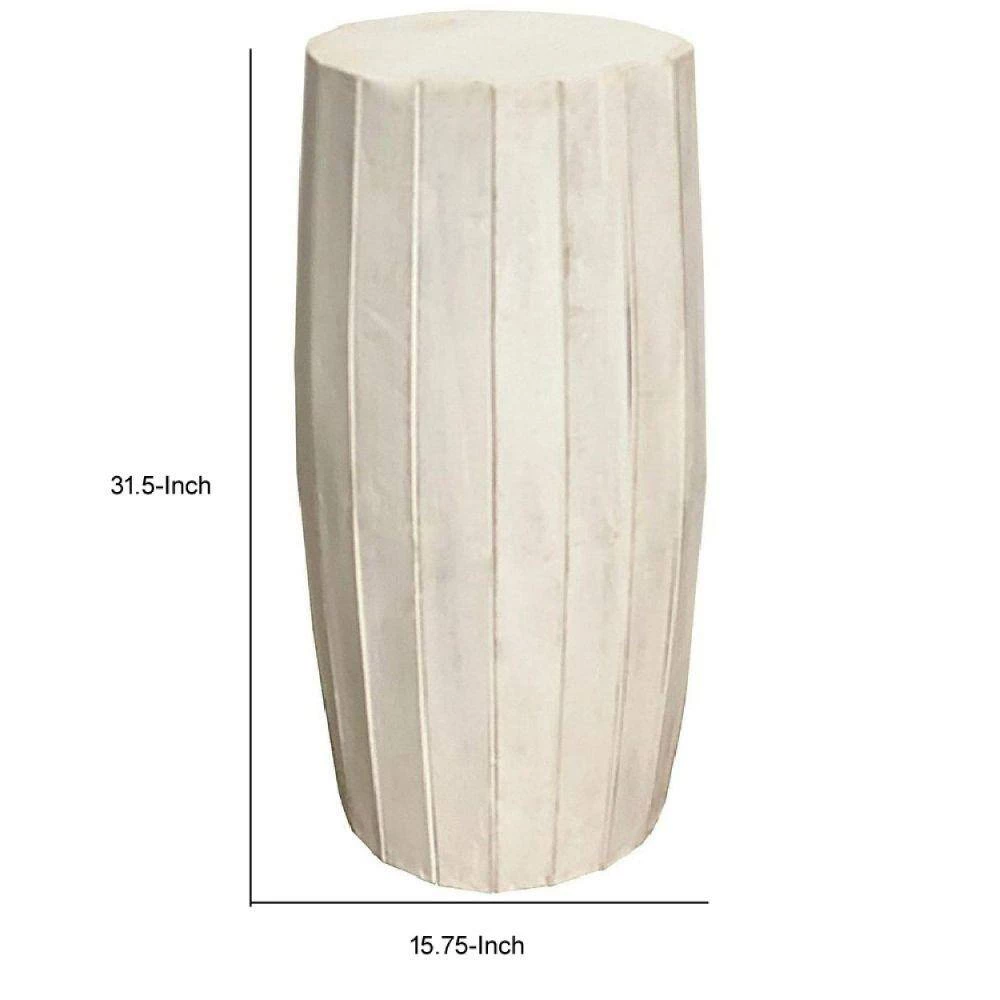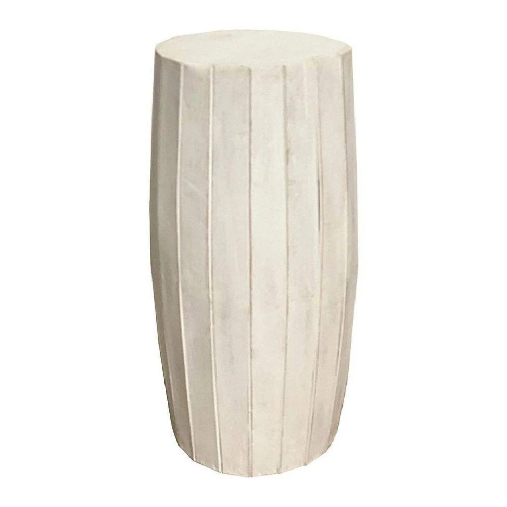 Reflecting artisanship and creativity, this well crafted, durable wood stool is a wonder of artistic finesse and beauty. with an elongated drum shaped silhouette in a distressed antique white color, this stool carries with it an air of both the refined and of the beautifully rugged. Check out more from our Sia collection.