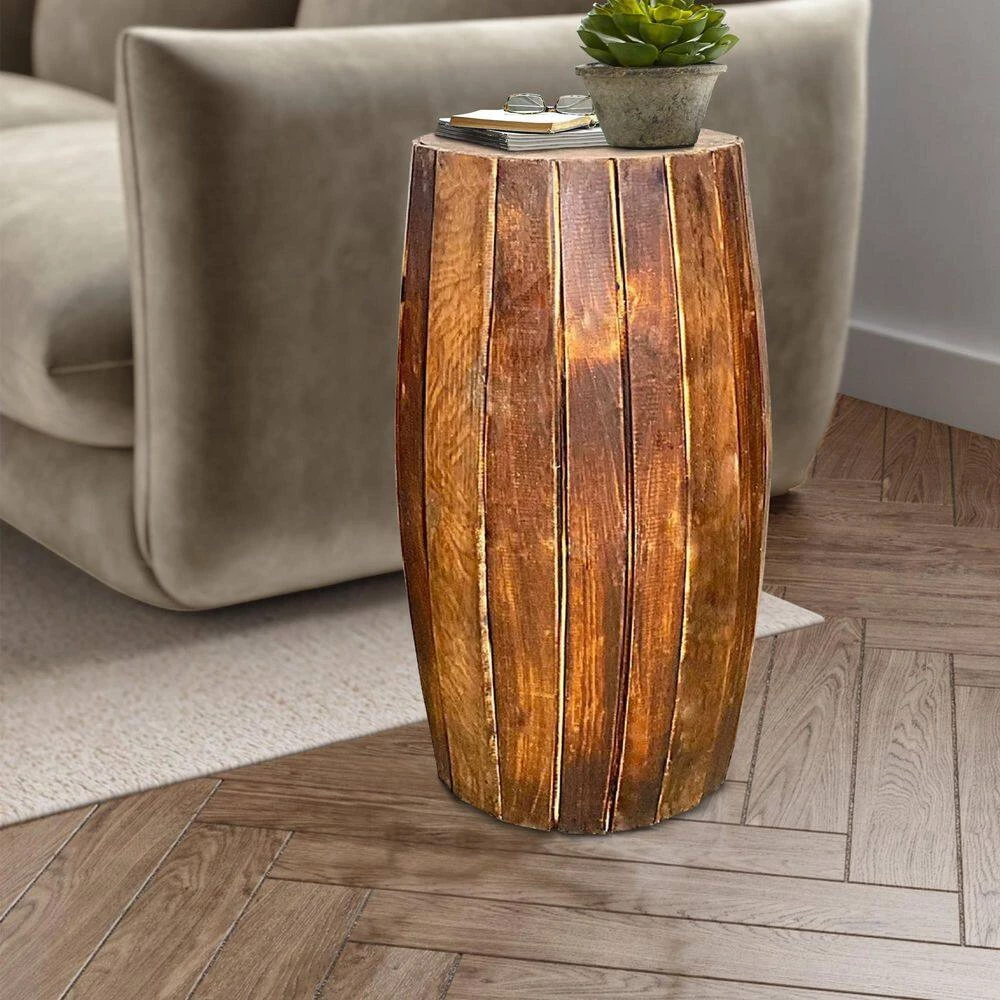 Reflecting artisanship and creativity, this well crafted, durable wood stool is a wonder of artistic finesse and beauty. With an elongated drum shaped silhouette in a distressed rustic brown color, this stool carries with it an air of both the refined and of the beautifully rugged. Check out more from our Sia collection.