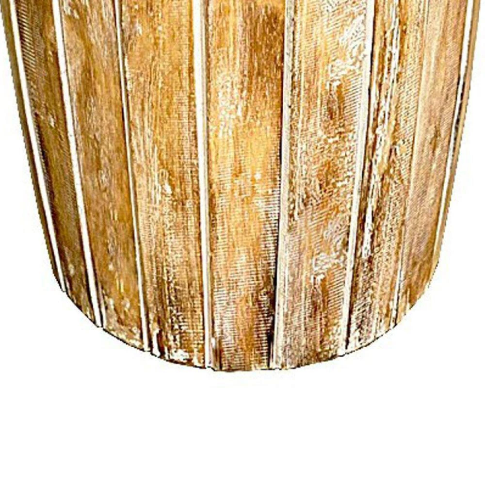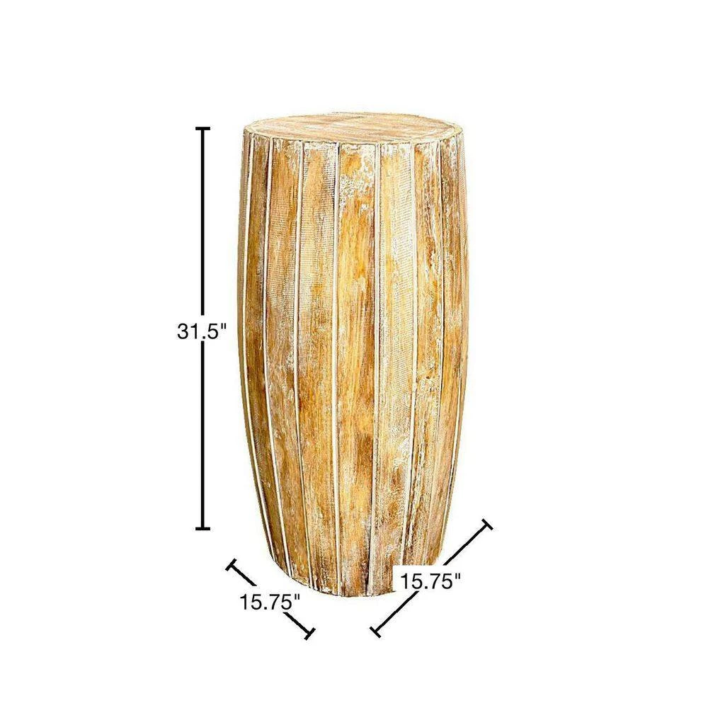 Reflecting artisanship and creativity, this well crafted, durable wood stool is a wonder of artistic finesse and beauty. With an elongated drum shaped silhouette in a distressed washed brown color, this stool carries with it an air of both the refined and of the beautifully rugged. Check out more from our Sia collection.