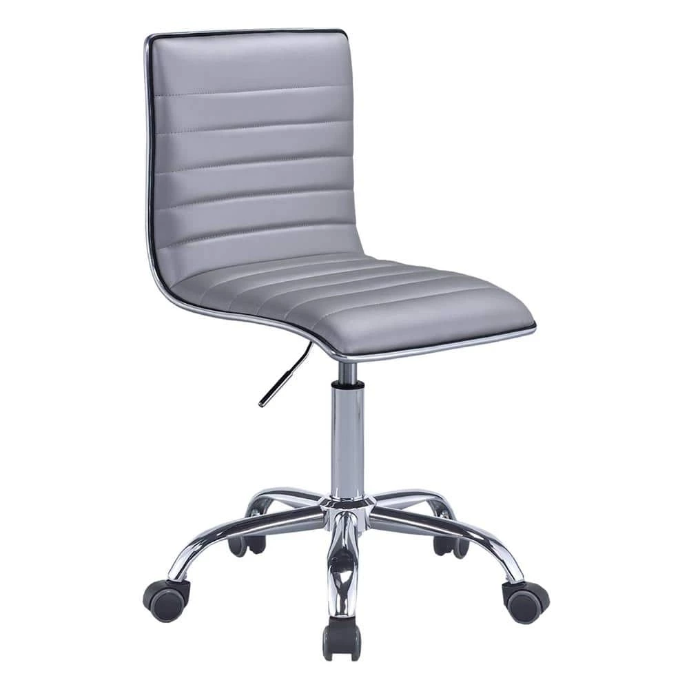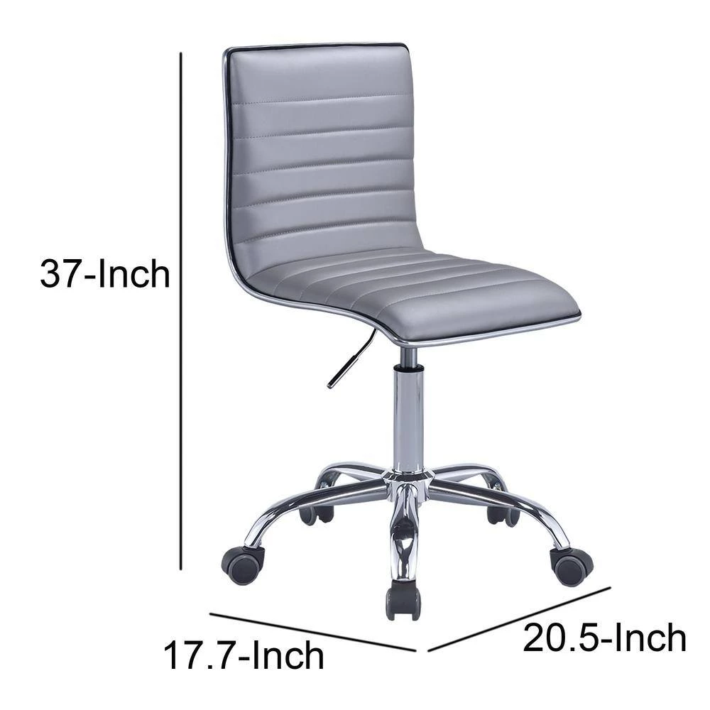 Make your office space or study room even more comfortable by adding this armless swivel chair, which not only keeps your back straight but also provide ultimate relaxation. This office chair is constructed using engineered wood and features padded faux leather upholstery with channel tufting details in elegant silver color. Providing great stability, it comes with a metal base with a height adjustability lever and five caster wheels that provide easy mobility. A perfect chair to optimize your workplace while providing you a relaxed posture.
