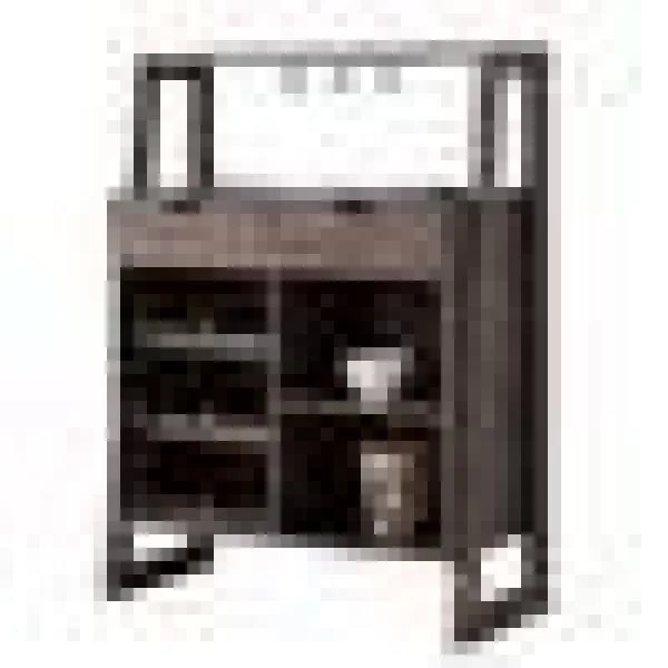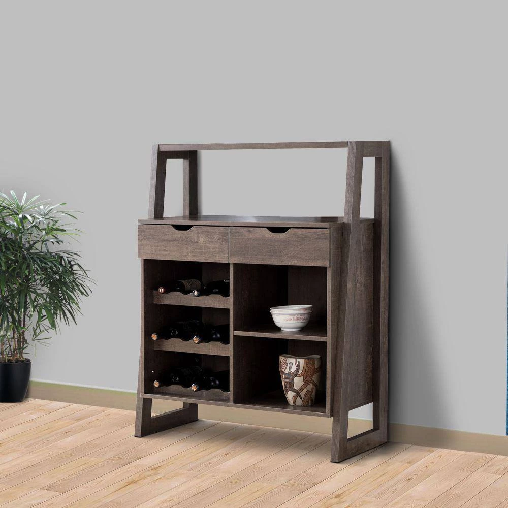 1 of the most stylish piece of furniture for your living space can be this multifunctional wooden wine cabinet and bar unit which comes in a brown color finish accented with aesthetic wooden grain details. The wine cabinet comes with sled legs to provide superior quality to the base. It features metal stemware for keeping your glasses, 3 wine racks, 2 drawers, and 2 interior shelves providing a great place to keep all your bottled treasure and accessories at 1 place.