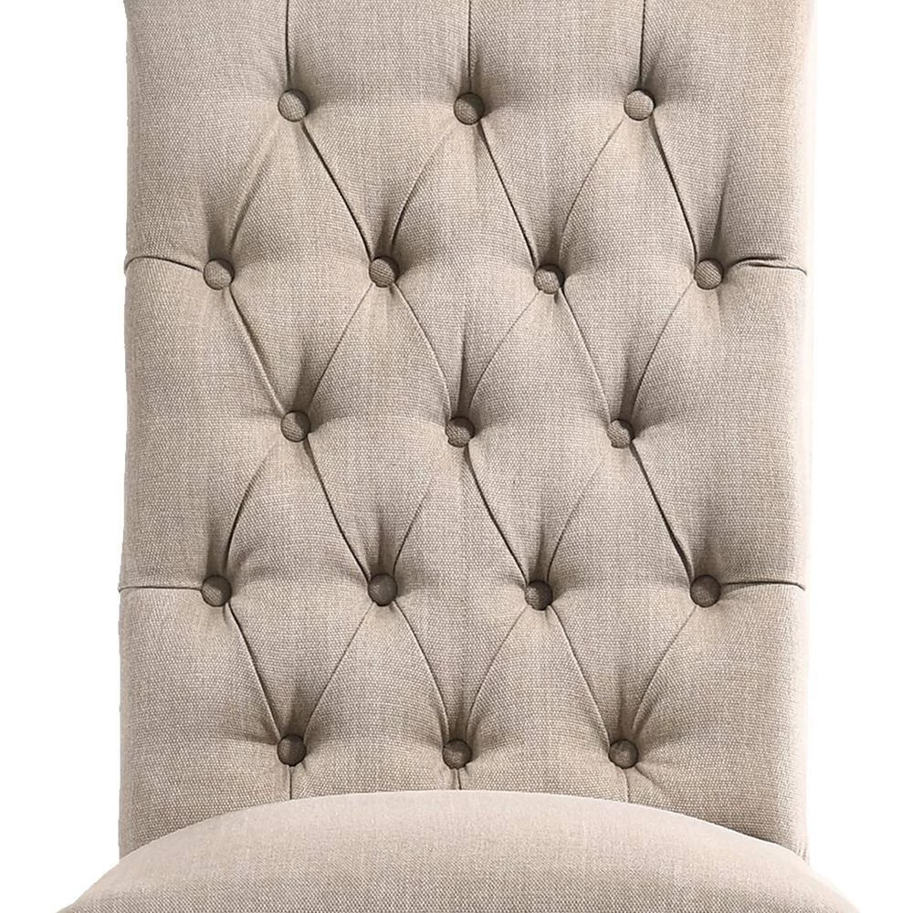 - Chairs are made from durable wood, while their seat and back is upholstered linen-like fabric