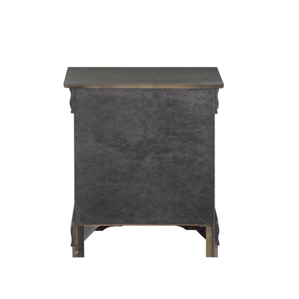 Create a graceful bedroom environment with this traditional style night stand finished. Place your most cherished photos, vases on top and create a charming corner in your bedroom. Incorporating two drawers with ample storage space, this night stand is perfect to stash your favorite books and magazines and you most frequently used items. Its wooden construction makes for a sturdy structure and offers robustness. This stunning piece is finished in hues of dark gray.