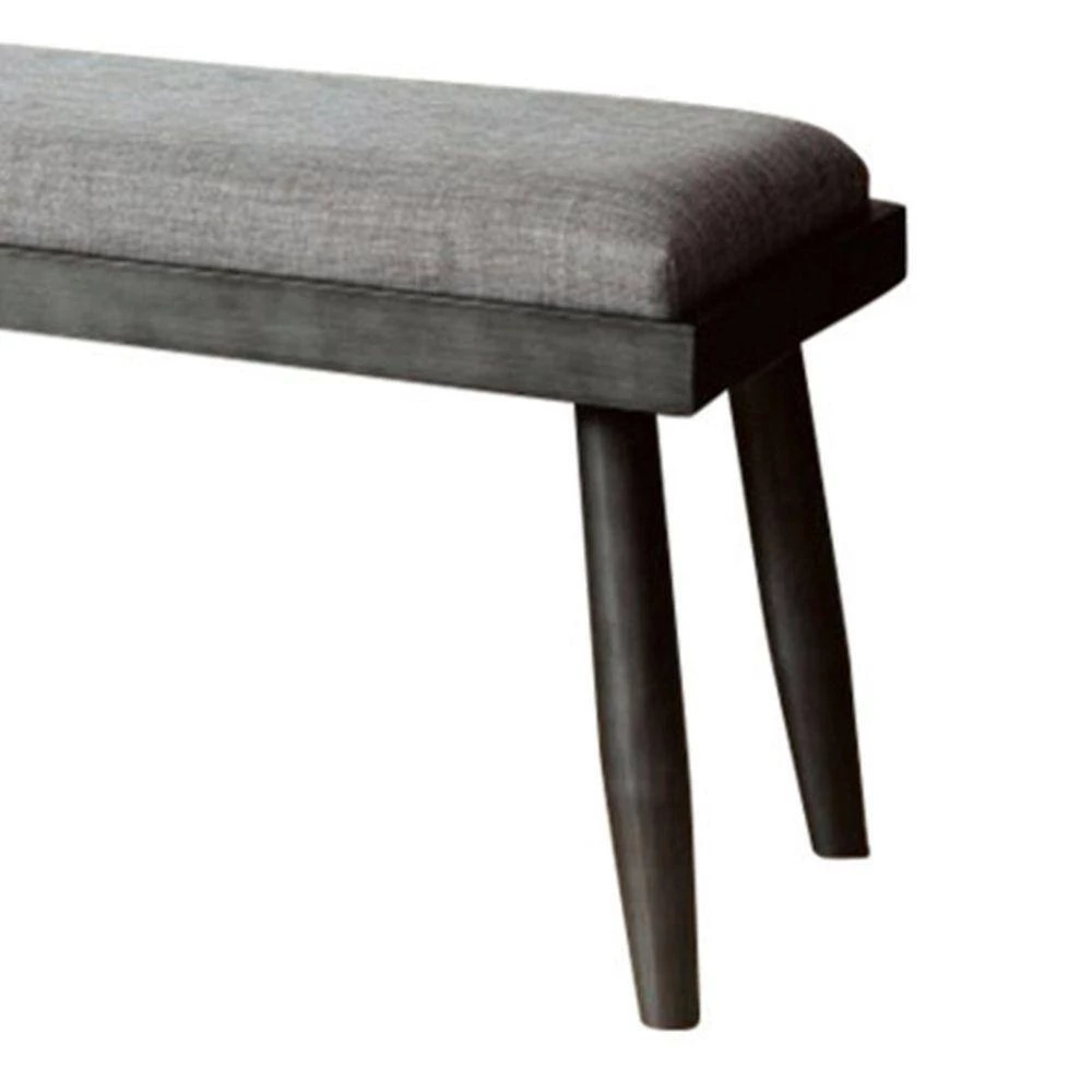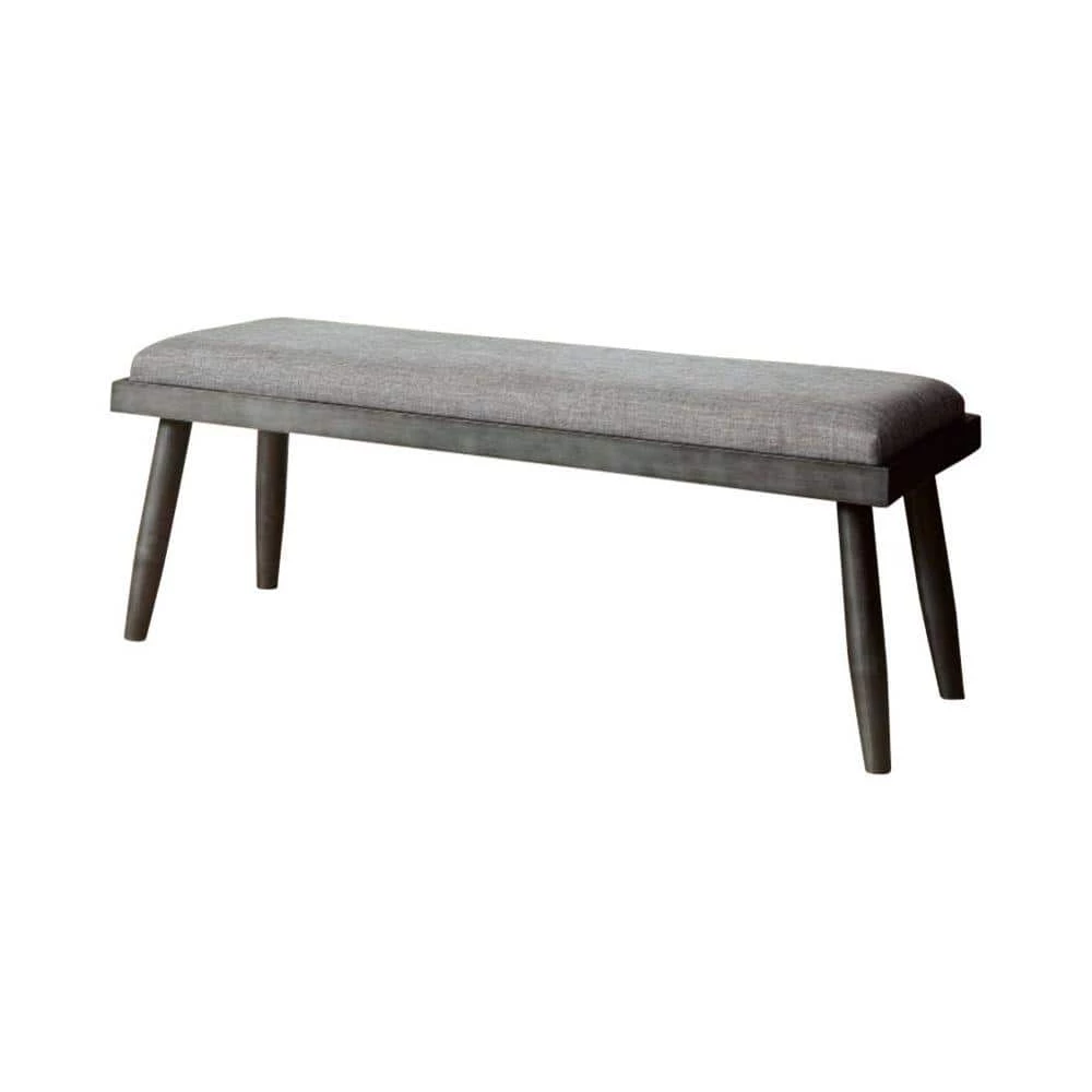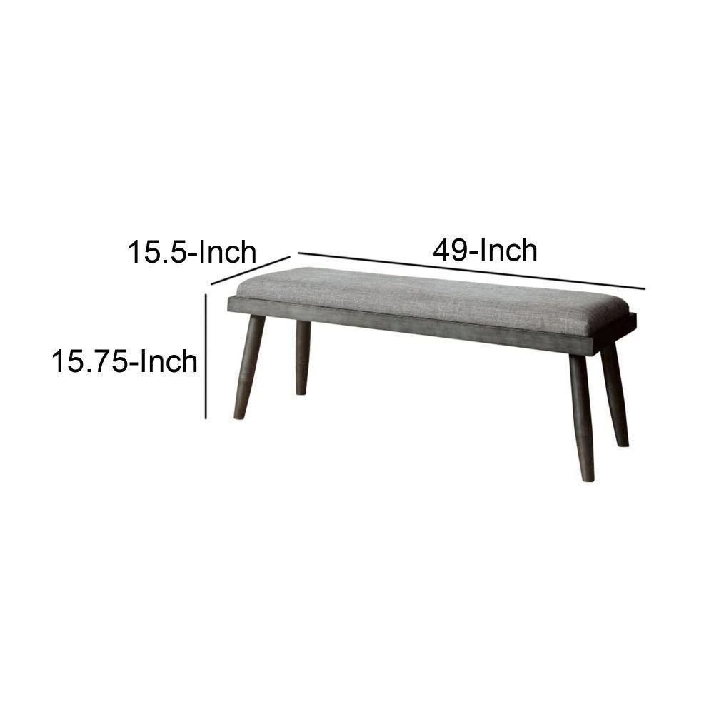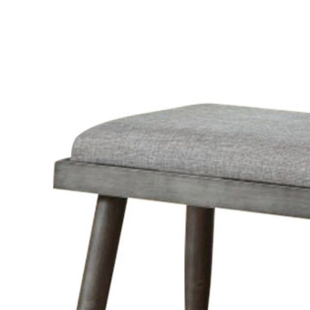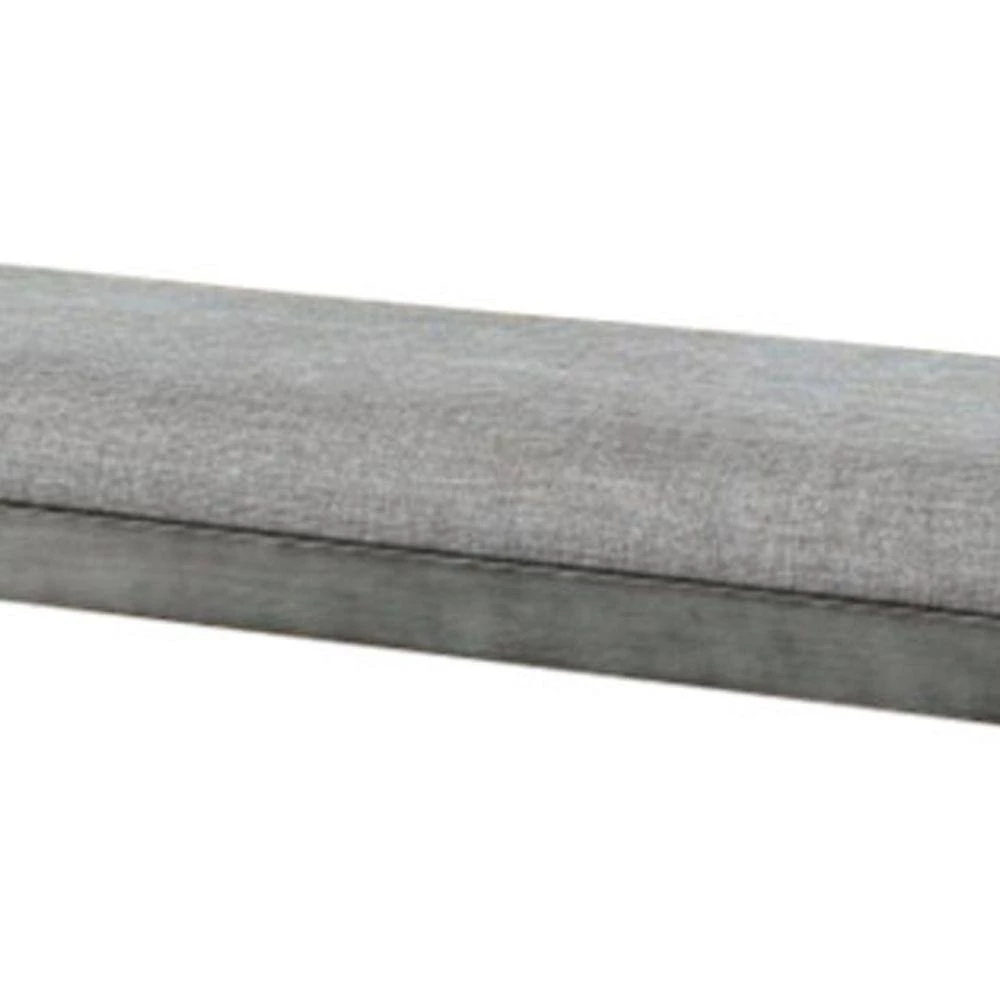 Accentuate your home decor setting with this transitional style Bench which comes with padded seat for a comfortable seating experience. Constructed from metal frame. It is upholstered with gray color fabric.