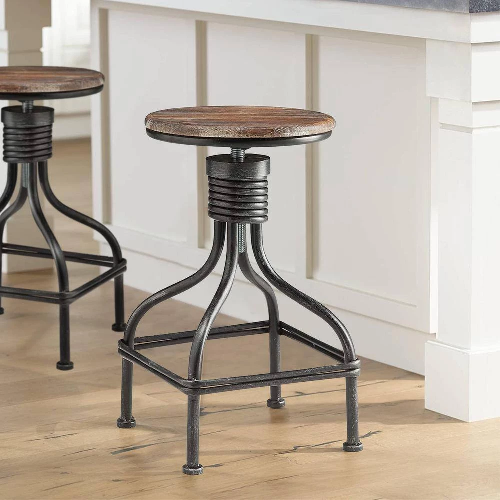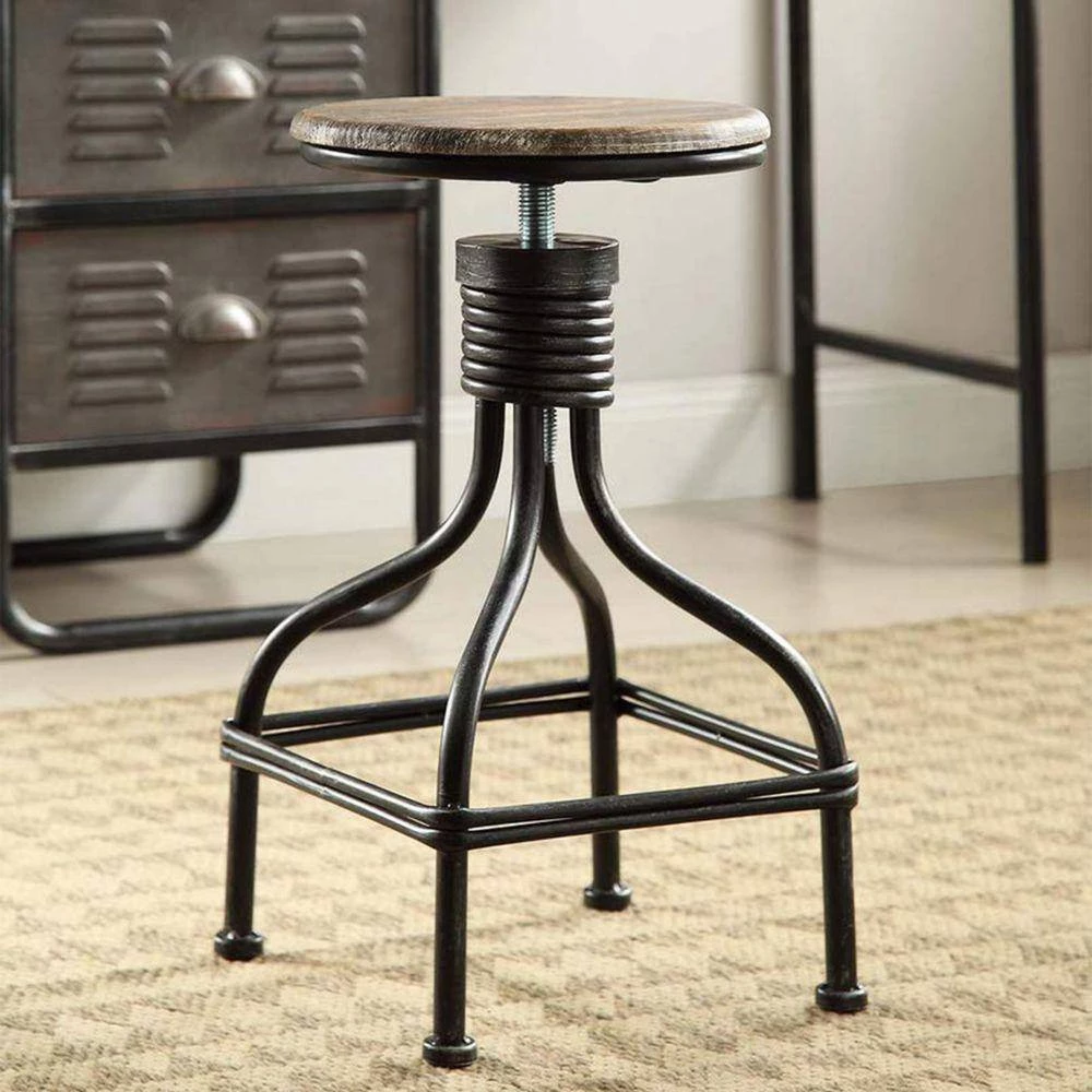 Assimilate a casual seating space to your bar or counter dining space with this Stool which comes with a round wooden seat for a comfortable seating experience. Incorporated with 360° swivel and adjustable height mechanism. It showcases vintage style construction and is accented with a distressed black finish.