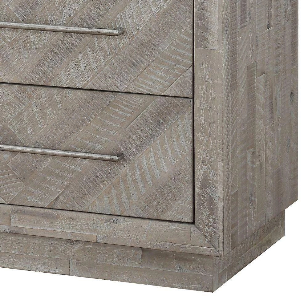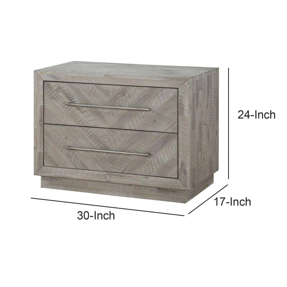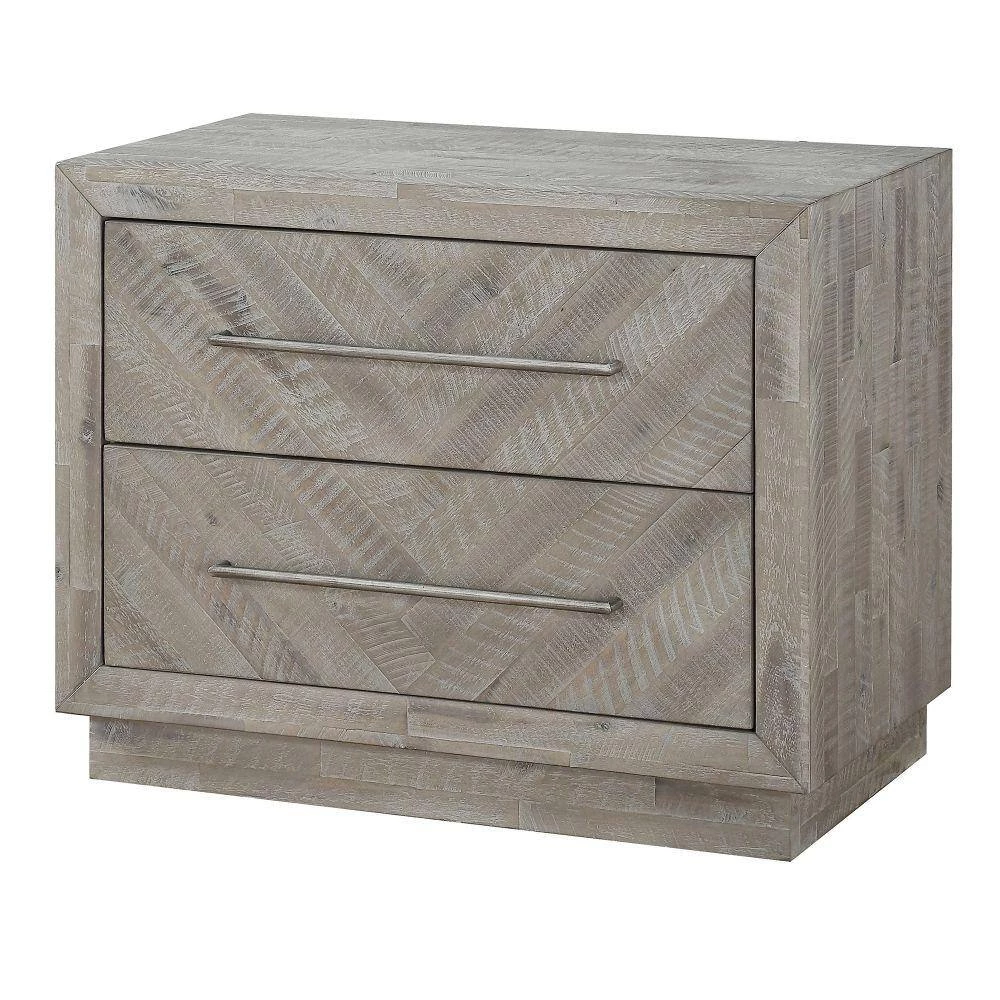 Bless your home with this combination of design and storage. This nightstand has two drawers with metal bar handles for easy accessibility to the drawers. It features an inlaid pattern, while its top can be used for the decorative display.