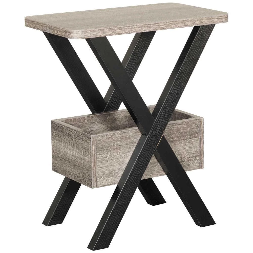 This wooden chair side table is perfect for any room’s decor and the distressed gray and black finish adds a warm touch to any space in your home. It will offer a simple, sturdy elegance for your living space. This chair side table has a top surface with bottom storage space compartment which is perfect for bedside reading.